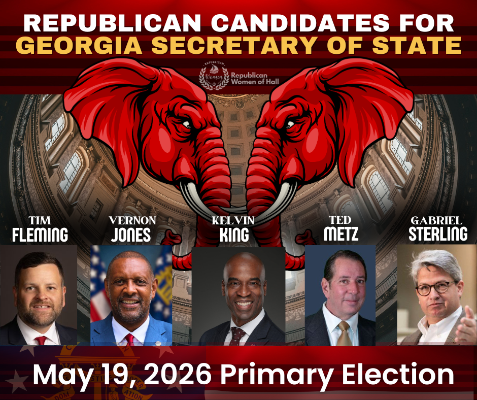 The upcoming Primary Election season is in full swing in our state of Georgia. Candidates are traveling the state, seeking to earn your vote. RWH highly encourages all fellow conservatives to begin getting acquainted with all the candidates that will be on your May 19, 2026, Election ballot. Make every opportunity to listen to candidates in person if possible and encourage others to do the same. But most importantly, mark your calendars for the May 19th Primary Election